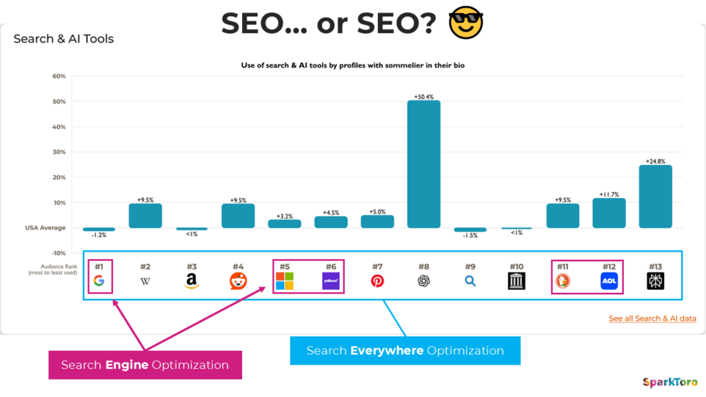 SEO: Search Everywhere Optimization. No puedo estar más de acuerdo en esta “reconversión” del acrónimo del SEO. Ya no trabajamos sólo para buscadores, cualquier plataforma que tenga buscador y sobre el que podamos influir, será nuestro nuevo terreno de juego.