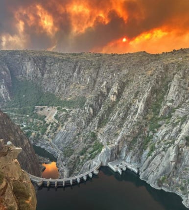 Os dejo una imagen tan impresionante como triste de lo que hemos vivido estos días en el pueblo. La foto está hecha desde España y lo que arde es Portugal. Aunque teníamos también otro fuego detrás que obligó a cortar una de las carreteras durante un par de días.