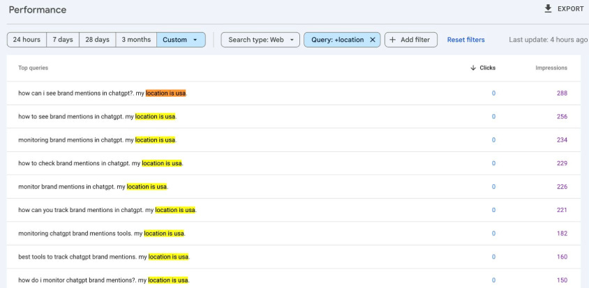 La basura de monitorización de plataformas en IA llega a GSC. Se empiezan a reportar búsquedas en GSC generadas por herramientas de monitorización de LLMs. Eso no es real (no genera clic) y además no tienen ningún sentido, más que alterar nuestros datos. A saber cómo han configurado esa herramienta o script para generar esos datos. Preveo que en el futuro cada vez veamos más basura de este tipo, por lo que saber identificar el ruido y eliminarlo de nuestros análisis es clave para tomar las mejores decisiones de negocio.