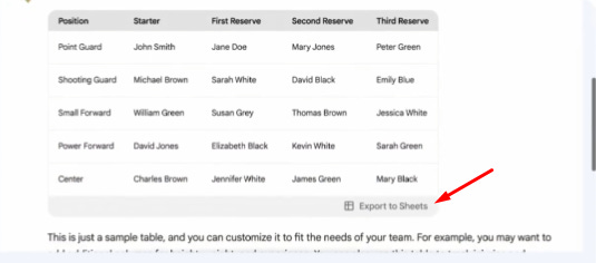 Por desgracia no es debido a que esté ofreciendo un mejor servicio o un valor diferencial a ChatGPT. Lo que más me ha gustado ha sido el anuncio de la integración de la IA con Google Sheets. Cuando se genere una tabla, tendremos la opción de exportarla a Sheets.