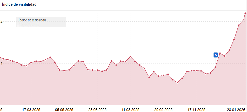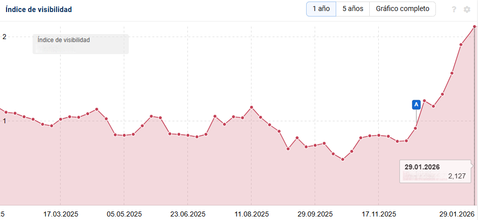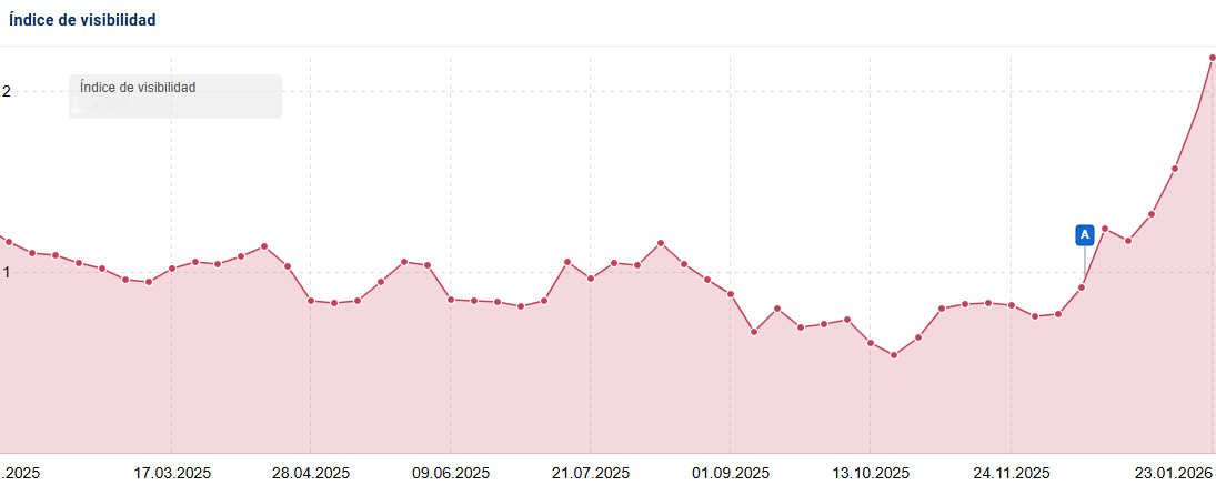 Los resultados de este cambio de mentalidad son evidentes. En la vista de un año (2025-2026), el índice de visibilidad ha pasado de la irrelevancia (con una caída lenta pero constante) a un crecimiento exponencial, superando incluso los niveles previos a la crisis.