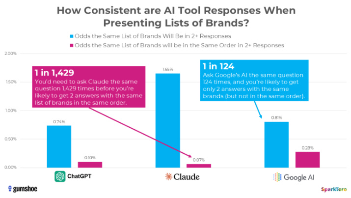 Si queréis profundizar en este punto, os recomiendo el estudio AIs are highly inconsistent when recommending brands or products; marketers should take care when tracking AI visibility donde se explica muy bien cómo funcionan estos sistemas y el tipo de respuesta que ofrecen.