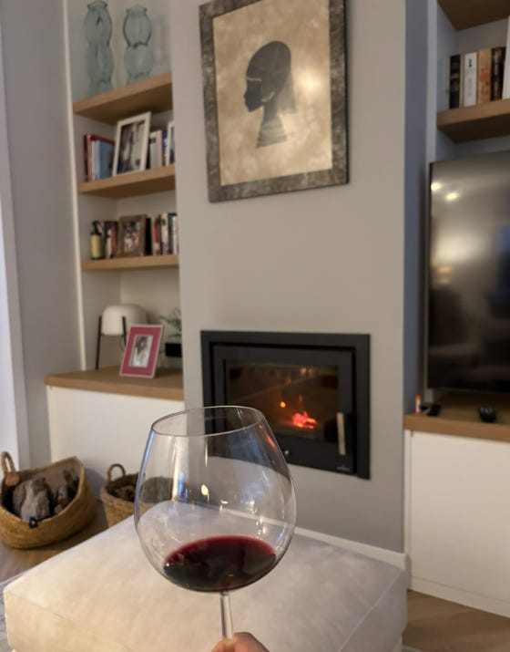 La semana pasada no hubo envío porque llevo una temporada de mucho trabajo. En algún punto, entre viajes, cursos, webinars y proyectos, hay que saber parar, respirar y tomar perspectiva. Todos tenemos malas épocas, pero precisamente por eso es importante detenerse y descansar. Si no recuperamos fuerzas, no podemos aportar nuestro verdadero valor. Os dejo una foto del viernes noche; mi plan perfecto: chimenea, copa de vino y una buena película.