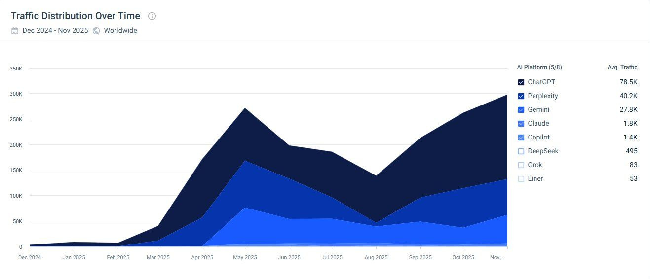 Este estudio dice que el tráfico de IA aún es minoritario, pero se concentra en páginas de alta intención.